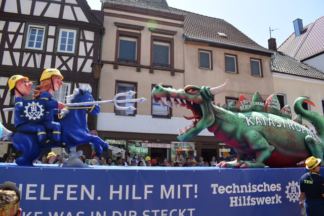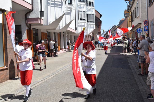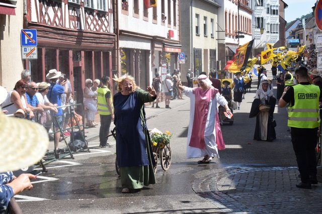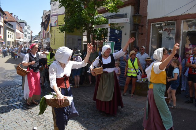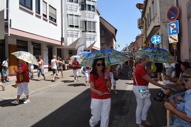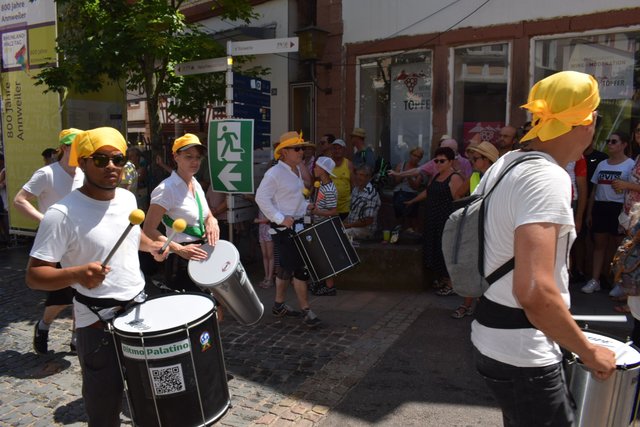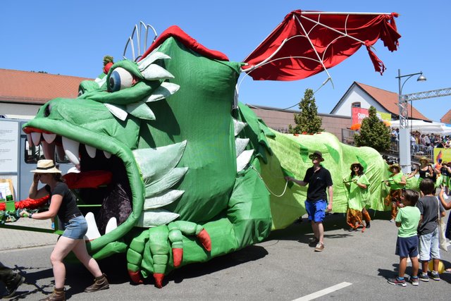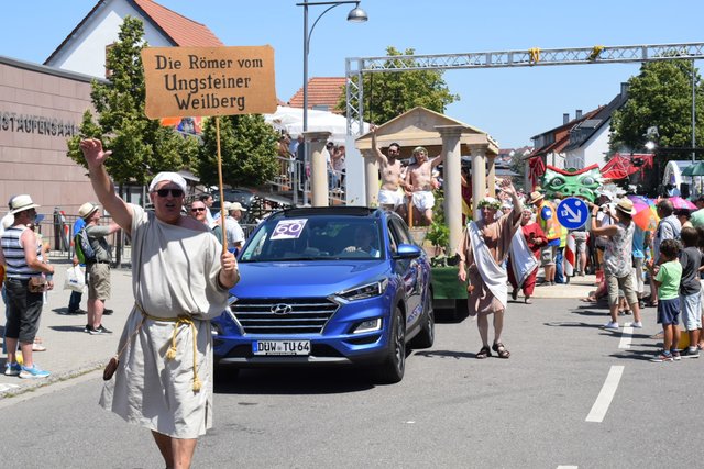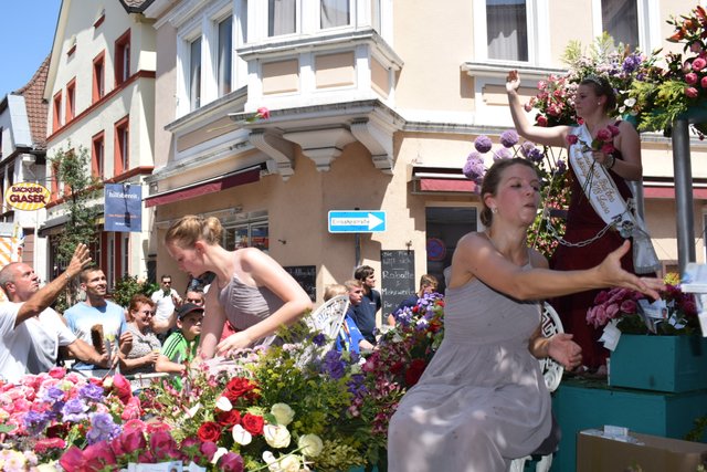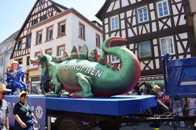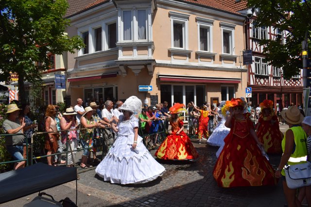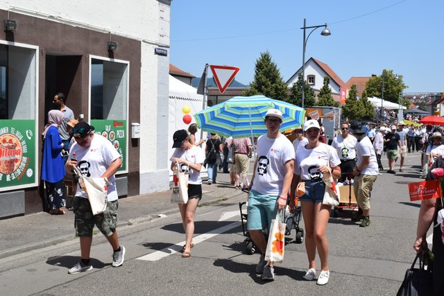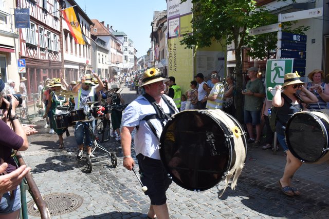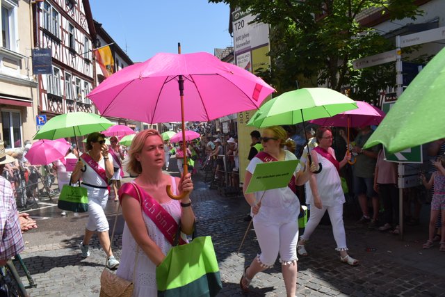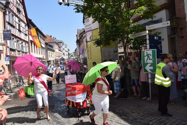 Tausende von Menschen säumten die Umzugstrecke, vornehmlich im Schatten, und trotzten der Hitze mit sonnigem Gemüt. Auch die Zugteilnehmer ließen sich von den hohen Temperaturen nicht beeindrucken und begeisterten mit Ihren Darbietungen die Menge.