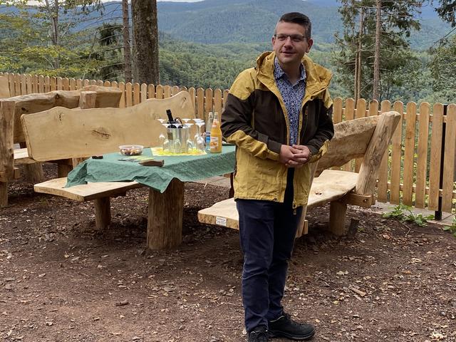 In bisher 310 Arbeitsstunden hat der PWV Annweiler den Rastplatz an der Holderquelle saniert und wieder attraktiv gemacht (wir hatten berichtet). Zwar ist noch nicht alles fertig, die Steinmetzarbeiten werden sich noch etwas hinziehen aber die Sicht ins Tal nach Gräfenhausen wurde vom Forst (Harald Düx) frei geschnitten, der Zaun und die Hütte sind erneuert sowie die neuen Sitzgarnituren aufgestellt. Trotz ehrenamtlichem Engagements war (und ist) dieses Projekt ohne finanzielle Hilfe nicht zu "wuppen", deshalb lag es Petra Jung-Schoch und Bürgermeister Benjamin Seyfried am Herzen, den Spendern vor Ort eine Plattform zu geben und des Dank des PWV Annweiler publik zu machen