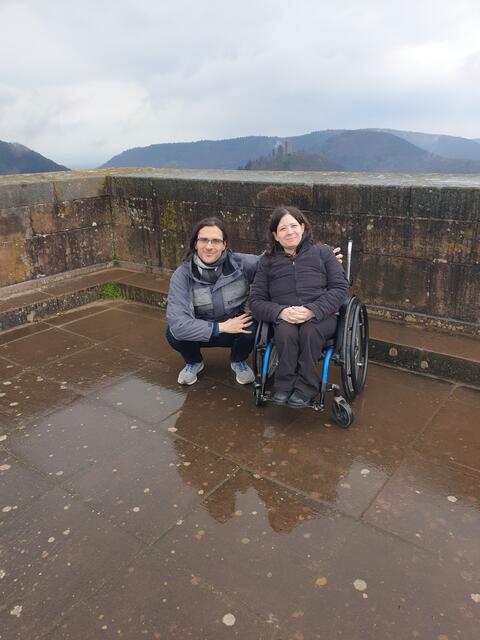 Erst führte ihr Weg durch den Wald, dessen lange Wege für Rollstuhlfahrer hin und wieder Widerstand leisteten, die es zu überwinden galt. Es war eine von ihnen selbst gewählte Herausforderung, um möglichst authentisch nachempfinden zu können, wie es damals wohl gewesen sein muss, von Annweiler aus zu Fuß und jetzt auch mit Rollstuhl zur Burg zu gehen/rollen.