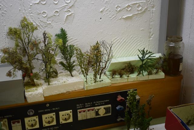 Bis dahin gibt es noch viel zu tun für die Modellbahnfreunde. Absoluter Grundsatz ist es von je her, dass alles, bis auf die Schienen natürlich, selbst gebaut wird. Nichts wird aus dem Spielzeugkatalog gekauft, sondern aus Holz, Gips, Stein, Kunststoff und Naturmaterialien selbst hergestellt. Vor allem die Pflanzenwelt kann sich sehen lassen. Mit viel Fingerspitzengefühl werden die Bäumchen kreiert und gebastelt. Die Gebäude wurden nach historischen Vorlagen und Fotos aus den 50ern und 60ern im Maßstab 1:87 nachgebaut.