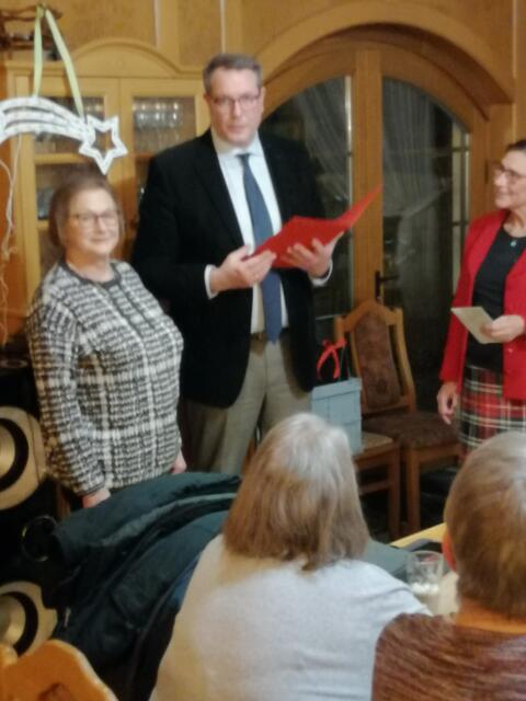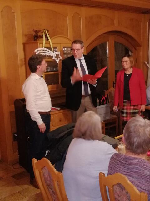 An der Jahresabschlussveranstaltung nahmen auch Alexander Schweitzer, Staatsminister im Ministerium für Arbeit, Soziales, Transformation und Digitalisierung des Landes Rheinland-Pfalz und MdL Christoph Spies teil. Minister Alexander Schweitzer berichtete, bevor er die Ehrungen vornahm, warum es so wichtig ist, dass ein Mitglied der SPD dieses Ministerium führt, da er z B. den Tarifvertrag in Gastgewerbe als allgemein verbindlich erklärte, um die Arbeit in dem Sektor nachhaltig attraktiv zu gestalten. Nach großem Applaus ehrte er die Jubilare in dem er jeden einzelnen mit seinem Beitrag zum Erfolg der SPD in Bad Dürkheim würdigte
