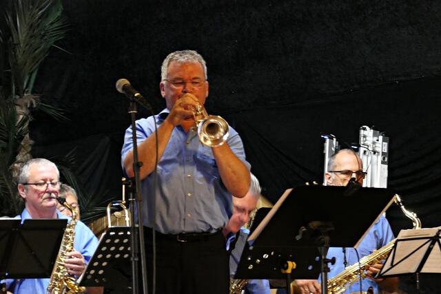Während der Pause hatte man Zeit, schon lange nicht mehr gesehene bekannte Gesichter zu begrüßen und ein wenig zu quatschen. Zum zweiten Set schnappte sich der Dirigent Paul Schütt seine Posaune und spielte einen Solopart, um danach den Solisten aus der hinteren Reihe in den Vordergrund zu holen, nämlich Ully mit seiner Trompete. Das Arrangement „Stardust“ wurde selbst zusammengestellt und hörte sich wundervoll an. Es folgten noch etliche musikalische Darbietungen, die den Mittag unvergessen machten.