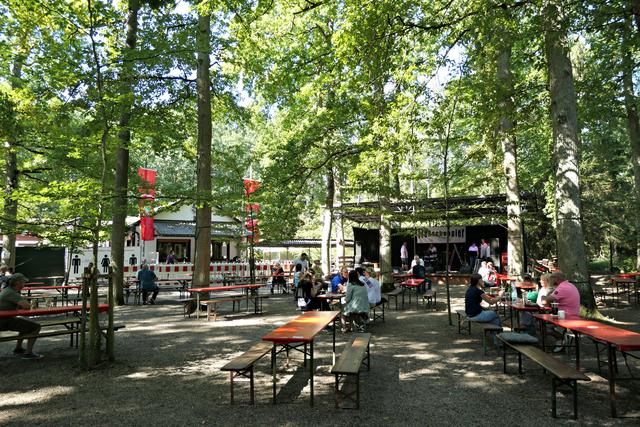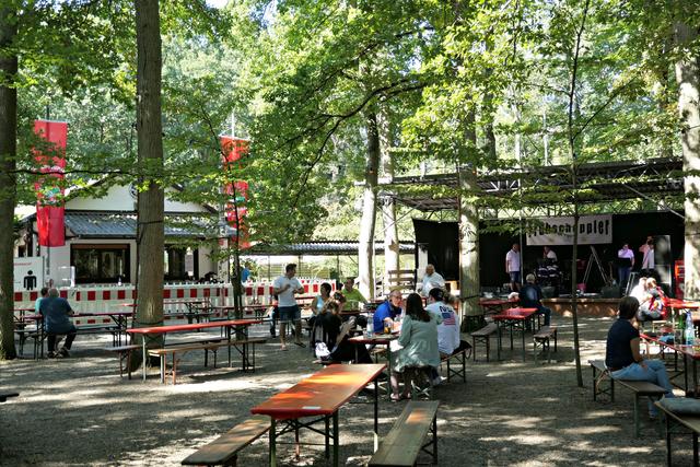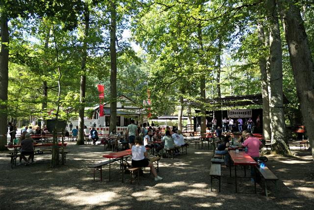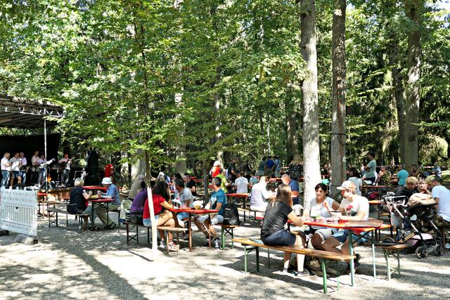 Während man hier gemütlich sein Getränk schlürfte wurde man, da mitten in der Natur, von herabfallenden Eicheln und durstigen Wespen belagert. Aber man gewöhnte sich mit der Zeit daran. Die Bänke waren zur Freude der Band mittlerweile fast alle belegt. "Ich bau dir ein Schloss“, „Ich bin ein Dorfkind“ und „Marina Marina Marina“ wurde nach der Pause geschmettert und auch ein Geburtstagskind namens Marvin mit „Happy Birthday“ geehrt bevor noch viele weitere Lieder folgten.
