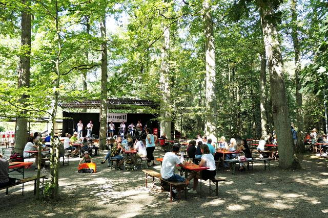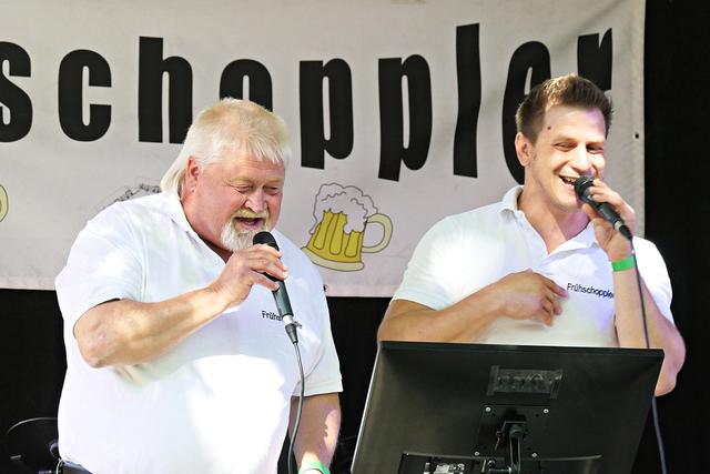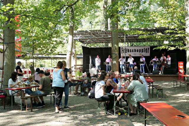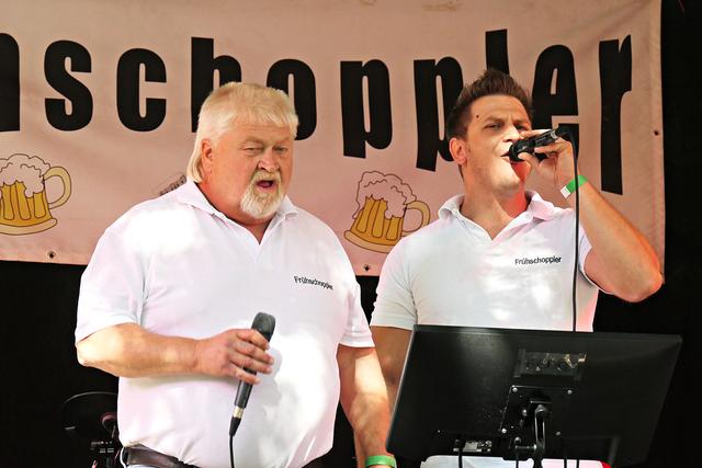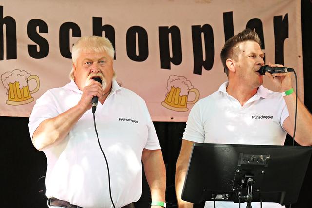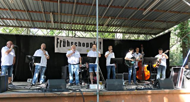 - Die Frühschoppler lockten zum Frühschoppen unter die Bäume