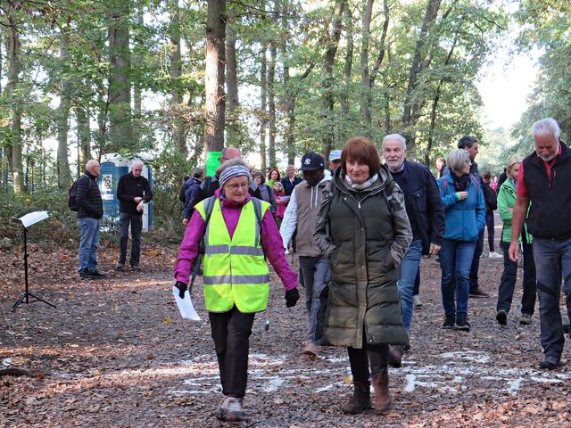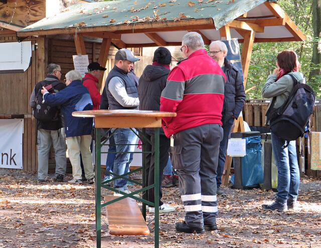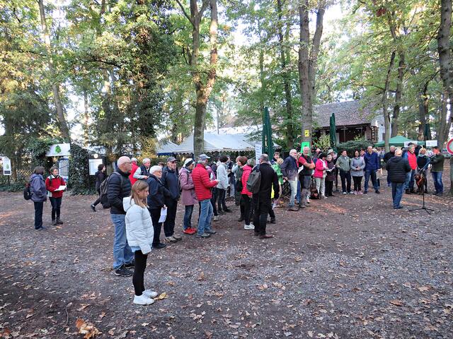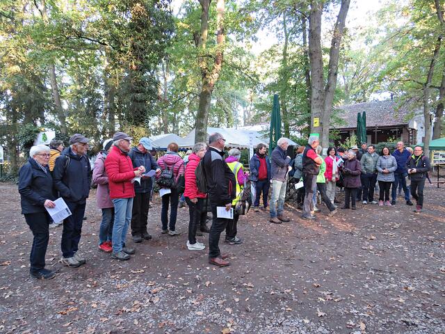 Böhl-Iggelheim. Am frühen Morgen des 9. Oktober lag noch die Kälte der Nacht auf der Natur, aber der Tag sollte noch einmal mit Sonne satt voranschreiten. Apropos „Schreiten“, es war der 47. Ökumenische Hungermarsch zu dem man sich am Behler Haisl, dem Böhler Naturfreundehaus, traf, um gemeinsam für einen guten Zweck zu laufen und zu spenden. Jeder Läufer bekam ein grünes Armbändchen zwecks Zählung und Erkennungsmerkmal zwischen den vielen Pilzesammlern im Wald. Natürlich wanderten auch Ortsbürgermeister Peter Christ mit Frau, Karl-Heinz Hasenstab mit Frau sowie Michael Knebel mit Frau mit. Burkard Grüninger (war für Spenden zuständig), Bernd Kiefer und alle anderen aus dem Team „Hungermarsch“ waren auch engagiert und mit Leidenschaft beim Arbeiten. Das Deutsche Rote Kreuz war ebenfalls vertreten, falls unterwegs einmal ein kleiner Unfall passieren sollte.