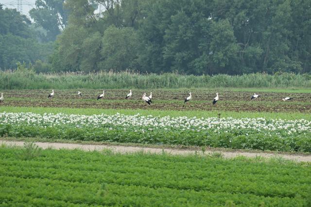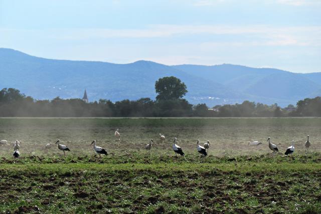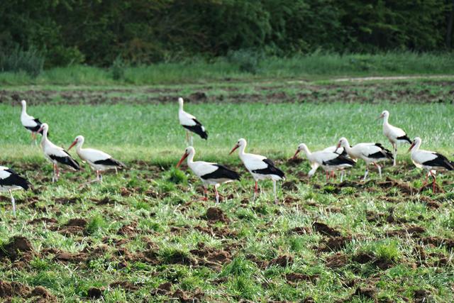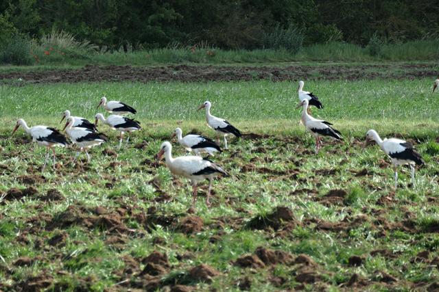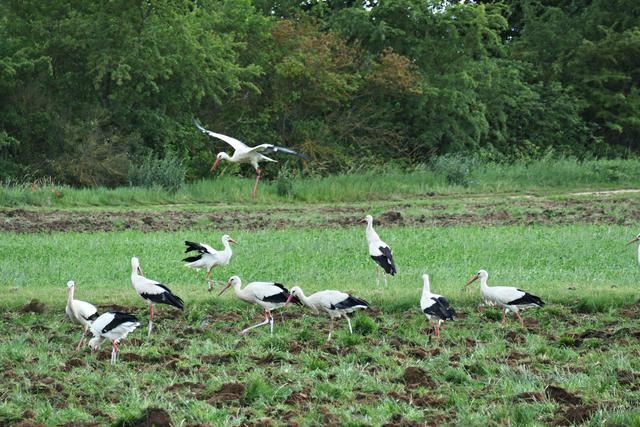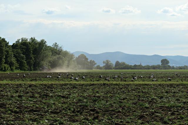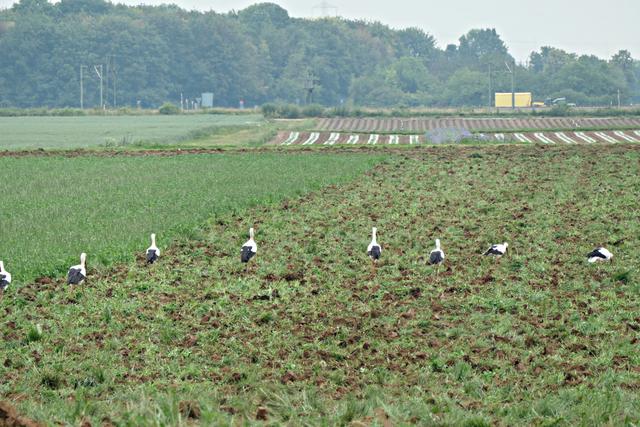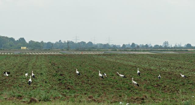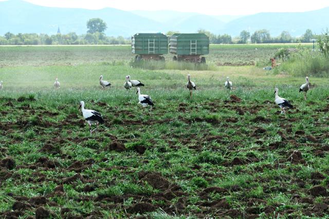 Böhl-Iggelheim. Im Juni, wenn die Felder von den Bauern umgepflügt werden, kann man in dem kleinen Örtchen Böhl-Iggelheim ein ganz besonderes Phänomen beobachten. Sie sind mittlerweile eine richtige Attraktion geworden. Die Rede ist von den unzähligen Störchen. Es gibt mehrere Storchennester in Böhl-Iggelheim. Meines Wissens befinden sich in jedem Nest Jungstörche, die bereits mit ihren Flügeln für die bevorstehenden Flüge eifrig trainieren. Und es wird nicht mehr allzu lange dauern, dann fliegen sie mit ihren Eltern und entfernten Verwandten durch die Lüfte. Diese Entwicklung ist jedoch normal, jedoch nicht die Menge. Jedes Mal, wenn ich mich im Umkreis von drei Kilometern bewege, sehe ich auf den aufgewühlten Feldern ungefähr 40 bis 60 Störche auf Futtersuche, wohlgemerkt auf einem einzigen Feld. Der Funk unter den Vögeln funktioniert, denn es gesellen sich mitunter nicht nur Reiher und Krähen hinzu, sondern auch unterschiedliche Greifvögel kreisen über ihnen, um sich im richtigen Moment auf die Beute herabzustürzen, wenn es sein muss, auch mit Gegenwehr eines spitzen Storchenschnabels. So haben wir die eleganten Greifvögel Milan, Turmfalke und Mäusebussard vor die Linse bekommen. Es ist ein wunderbares Schauspiel, dem man über längere Zeit beiwohnen möchte. Egal, ob an der lauten A61 oder am ruhigen Holzweg, das stört die Tiere anscheinend überhaupt nicht. Hauptsache der Tisch ist reich gedeckt. (mel)