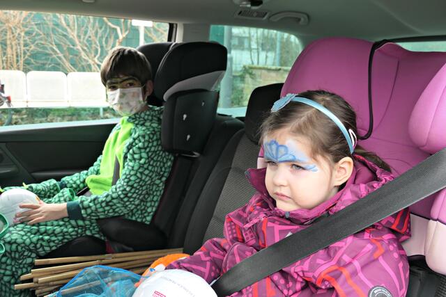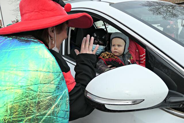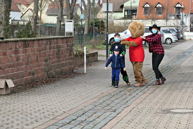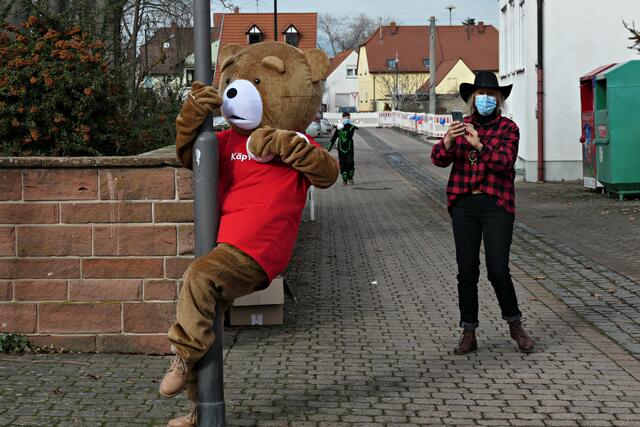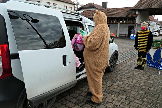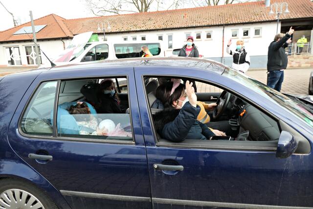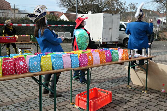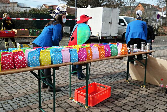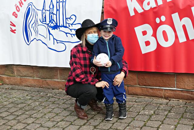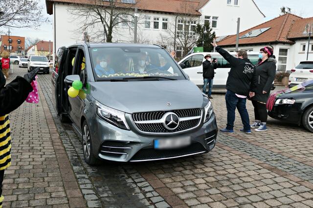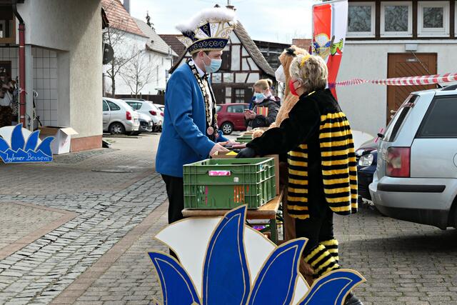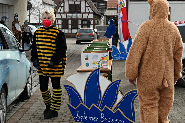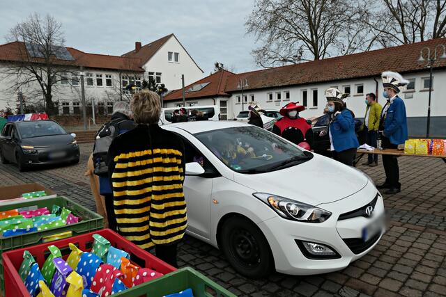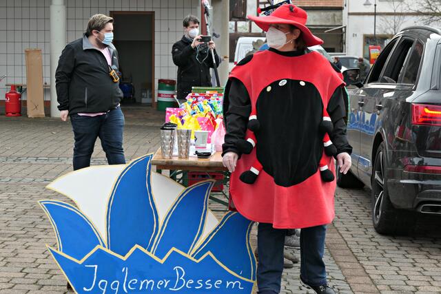 Böhl-Iggelheim, OT Iggelheim. Trotz Absage der diesjährigen Kampagne wollten es sich die Böhler-Hängsching e. V. und Iggl‘emer Bessem nicht nehmen lassen, eine kleine Aktion für die Kinder der Gemeinde Böhl-Iggelheim zu starten. Deshalb wurde am 16. Februar (Faschingsdienstag) auf dem Kerweplatz/Dorfplatz in Iggelheim von 13.00 bis 17.00 Uhr ein „Drive-In-Kinderfasching 2021“ aus der Wiege gehoben. Unter den scharfen Augen des Vollzugsdienstbeamten Maurer ging alles ordnungsgemäß vonstatten.