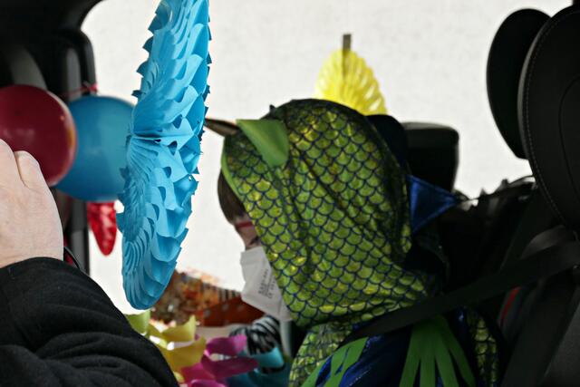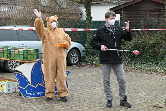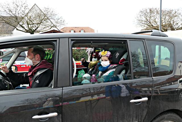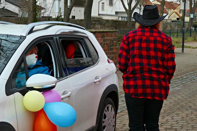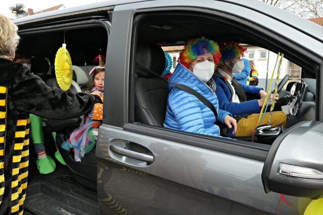 Es wurde geschunkelt, mal nach links und mal nach rechts und auch nach vorne und nach hinten und immer mit Hinweis auf die 1,50 Meter Abstand. Die Stimmung war gut, Konfetti flog durch die Luft und manche Autos waren mit Luftballons geschmückt. Und trotzdem hoffen alle, dass nächstes Jahr wieder ein normaler Karneval stattfinden kann.