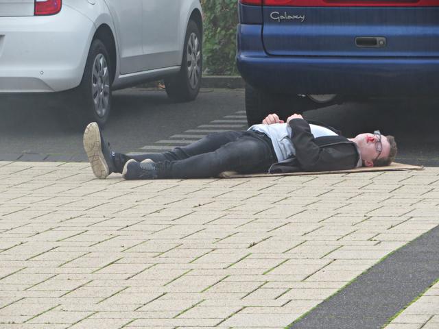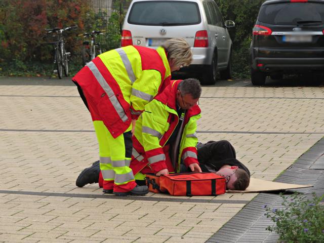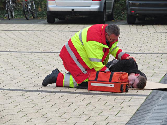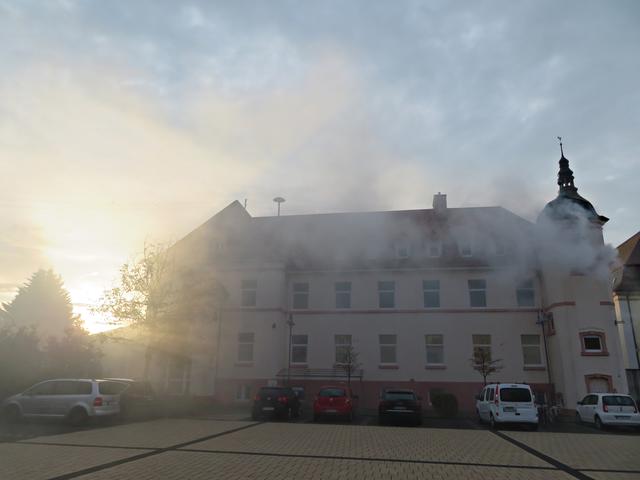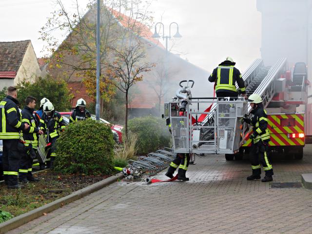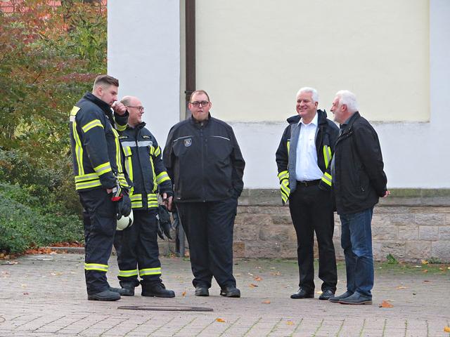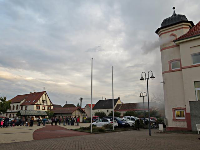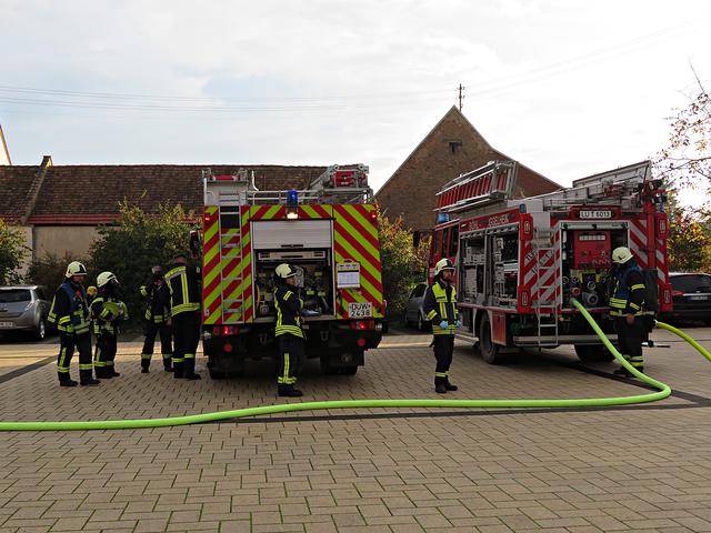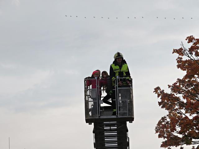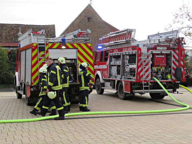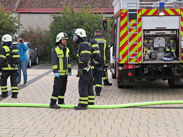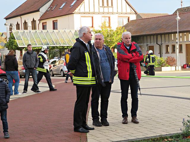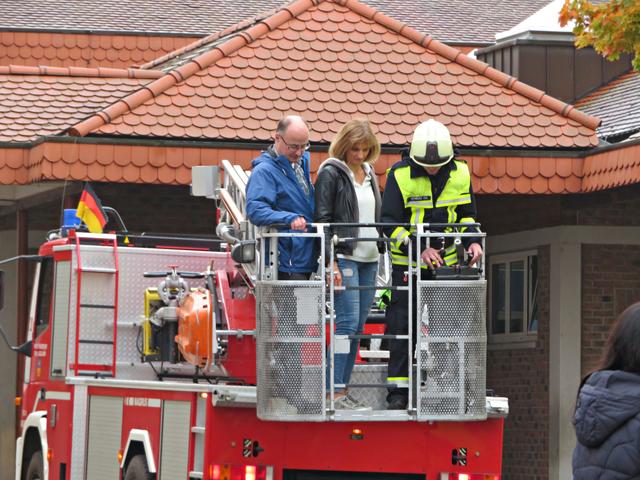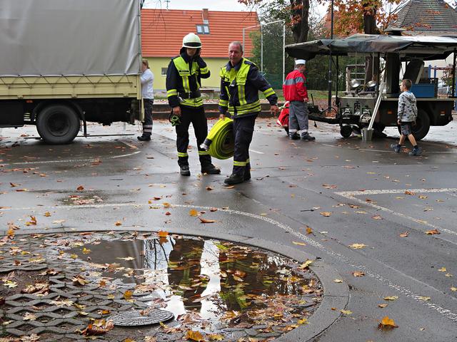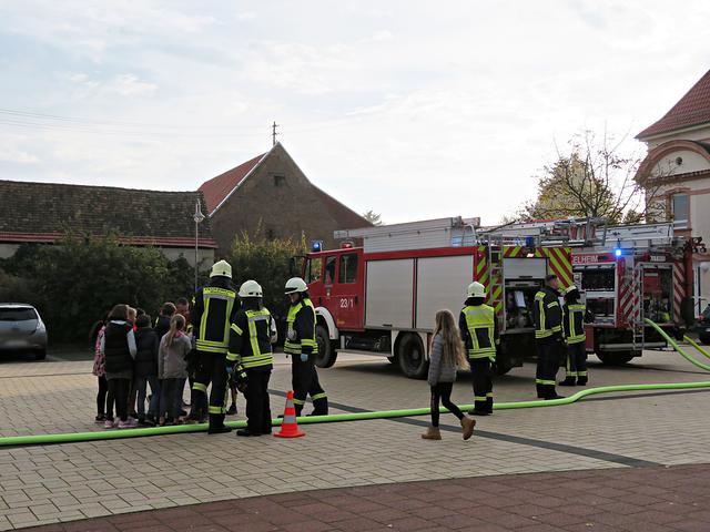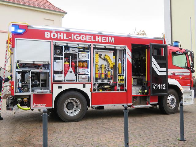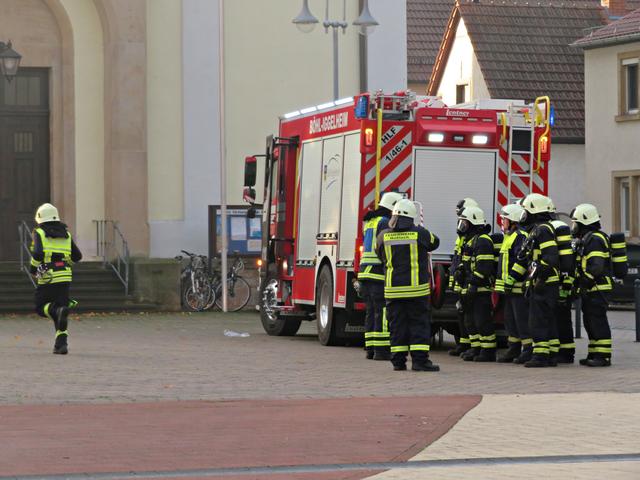 Böhl-Iggelheim, OT Böhl. Am 20.Oktober fand im Ortsteil Böhl die Jahreshauptübung der Freiwilligen Feuerwehr Böhl-Iggelheim statt. Bereits kurz vor der offiziellen Ankündigung für 8.30 Uhr qualmte es aus einem Fenster im Obergeschoß der Johannes-Fink-Grundschule in der Kirchenstraße mächtig. Die Feuerwehr rückte aus Iggelheim mit Blaulicht an und alles lief wie bei einem Ernstfall ab. Auch ein scheinbar Verletzter lag auf dem Boden und blutete aus der Nase. Sofort wurde sich seiner angenommen und in die stabile Seitenlage gebracht während die anderen Feuerwehrmänner sich des Brandherdes annahmen und behände die Drehleiter ausfuhren, um die im zweiten Stockwerk wartenden Schulkinder durch das geöffnete Fenster zu retten. Jedes Mal fuhr die Leiter nach oben und kam mit zwei bis drei Kindern wieder zurück auf den Boden, wo sie in Sicherheit waren. Alles ging ganz schnell wie in einer richtigen Notfallsituation. Es kamen immer mehr Feuerwehrautos auf den Platz gefahren und immer mehr Zuschauer vornehmlich mit Kindern beobachteten das Spektakel.