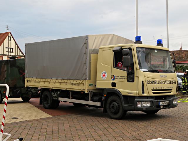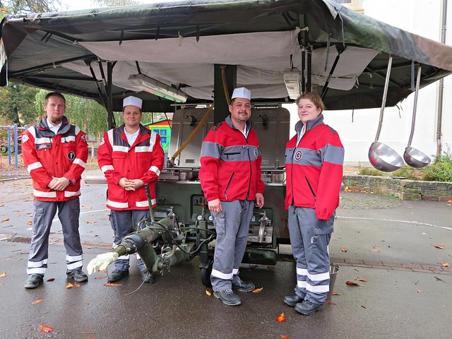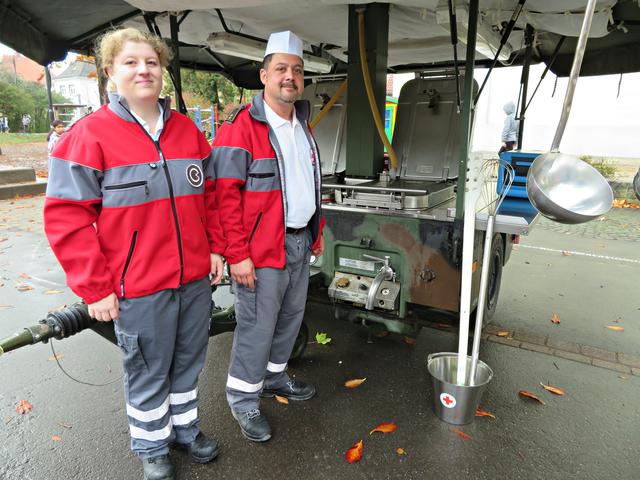 Helfer vom „Roten Kreuz“ aus Limburgerhof fuhren ebenfalls mit zwei Wägen auf den Platz, aber sie mussten nichts löschen, nur den Hunger stillen und so gab es am späten Vormittag Nudeln mit Bolognesesoße und in der Turnhalle konnte man auch seinen Durst stillen.