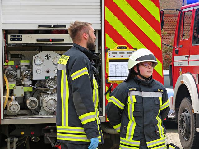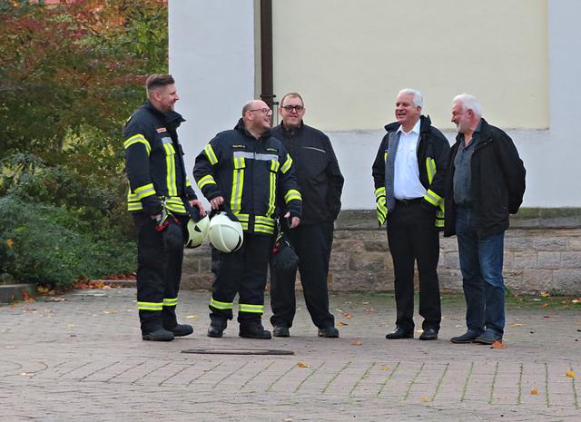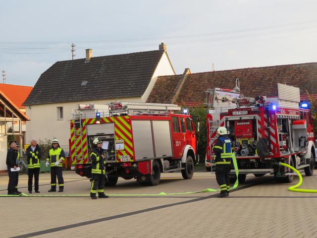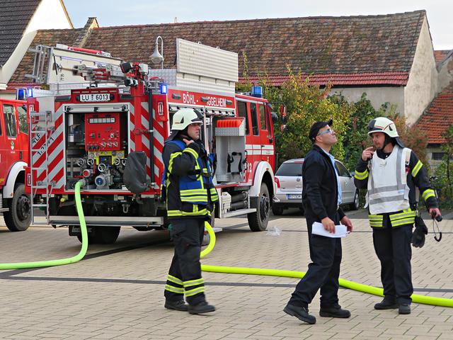 Nachdem die ganzen Übungen absolviert und die langen Schläuche wieder im Feuerwehrwagen verstaut waren, versammelten sich die Feuerwehrleute zur Einsatzbesprechung. Wir können zufrieden zusammenfassen, dass es keine Verletzte zu beklagen gab und alles wie am Schnürchen ablief. (mel)