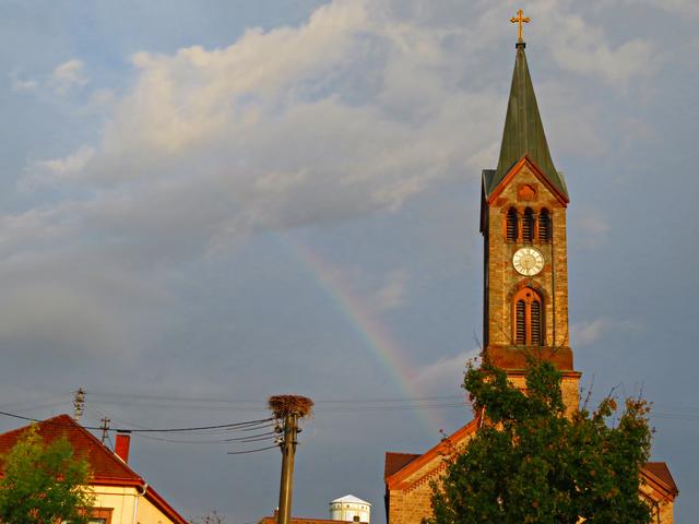 An diesem schönen Morgen war das Wetter durchwachsen und es regnete auch einmal kurzzeitig, was einen schönen Regenbogen hinterließ. Aber im Großen und Ganzen war es trocken und die entstandenen Pfützen waren für die Kinder ein magnetischer Anziehungspunkt.