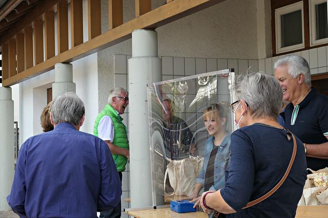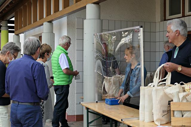 Auf die Frage "Wo und wie feiern Sie heute Kerwe?" antwortete Peter Christ, dass er nicht nur für sich eine Kerwedudd gekauft habe, sondern auch an die Verwandtschaft verschenkte. Er selbst wird heute Abend mit seiner Familie essen gehen. Karl-Heinz Hasenstab hatte am Tag zuvor privat mit DorfArt gefeiert. Und da er in Böhl seine Dudd wegen Knappheit abgab, konnte er heute so viele kaufen wie er wollte. Er wolle mit Familie zu Hause feiern. Bernd Johann wollte heute Mittag nach Kaiserslautern zum Oberligaspiel der U21 fahren. Er habe sein Kerwesoll erfüllt mit den Tüten und hofft, dass man nächstes Jahr wieder richtige Kerwe feiern kann.