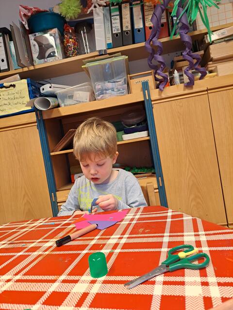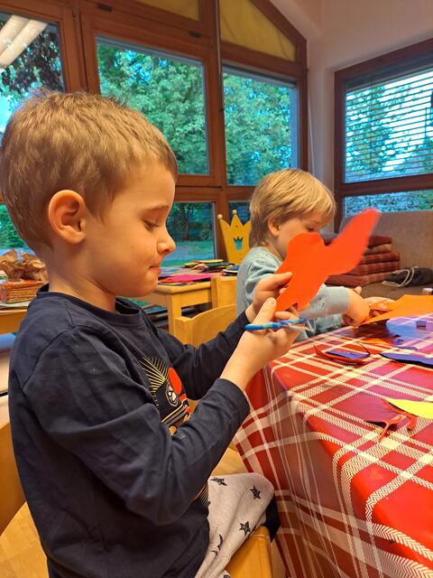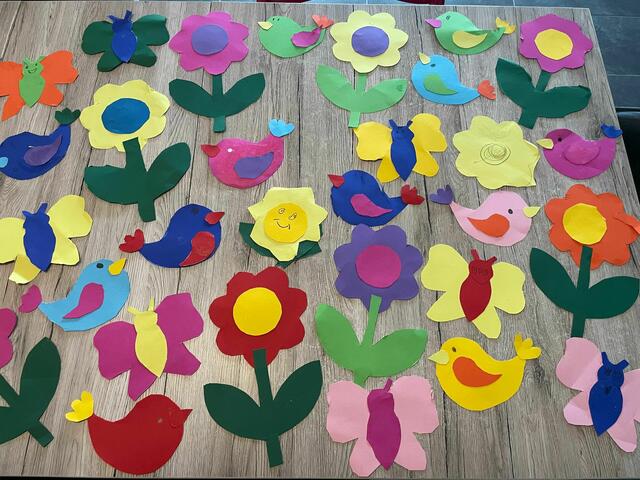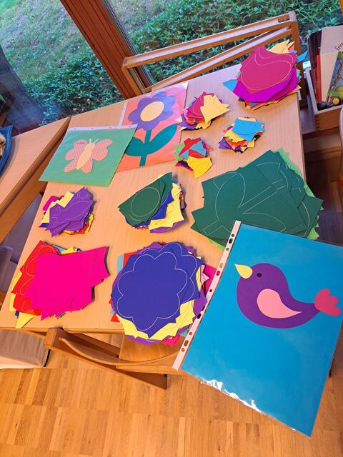 Vögelchen, Blumen und Schmetterlinge zieren bald die Fenster des Iggelheimer Seniorenzentrums. Verantwortlich dafür waren der Elternausschuss der kommunalen Kindertagesstätte Storchennest gemeinsam mit den dortigen Kindern der drei Gruppen: Die Löwenzähne, die Wiesenwichtel und die Frösche. Und der frühe Vogel wurde auch schon früh gebastelt. Zu Wochenbeginn trafen sich drei der insgesamt neun Mitglieder des Elternausschusses um 8 Uhr im Atelier des Kindergartens und dann ging es ran an Schere und Klebstoff. Immer in kleinen Gruppen wurden zunächst Flügel, Blüten und Vogelschnäbelchen in den tollsten Tonpapierfarben ausgeschnitten und am Ende wurde alles zusammengeklebt. Für viele Bewohner des Seniorenheims gab es ein Fensterbild und damit klar ist, von welchem Kind das Geschenk kommt, durften die ihr Gebasteltes auch mit ihrem Namen versehen. Selbst die ganz Kleinen übten sich dabei schon mit Hilfe einer Namensvorlage und waren am Ende stolz auf das gebastelte Werk. Wieder mal eine sehr gelungene Aktion in Zusammenarbeit zwischen Erzieherinnen, Elternausschuss und den Kindern der Kita Storchennest. Am kommenden Samstag geht es schon direkt weiter, der nächste Stammtisch für Eltern und Kinder steht an und auch im weiteren Verlauf des Jahres wird es wieder tolle Aktionen geben. Gemeinsam mit dem Seniorenheim sind weitere Zusammentreffen in Planung, unter anderem am 11. August zum "Mehrgenerationen-Aquarell-Malen" im Garten. In Zusammenarbeit mit dem Bauhof der Gemeinde wird gerade die Neuanlage des Vorgartens geplant und natürlich findet im Herbst auch wieder der Kleiderbasar statt, am Freitag, den 22. und Samstag, den 23.09.2023, wie immer in der SG (ehem. VfB-) Halle am Neugraben in Iggelheim.