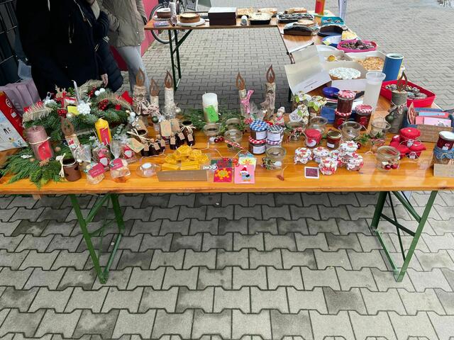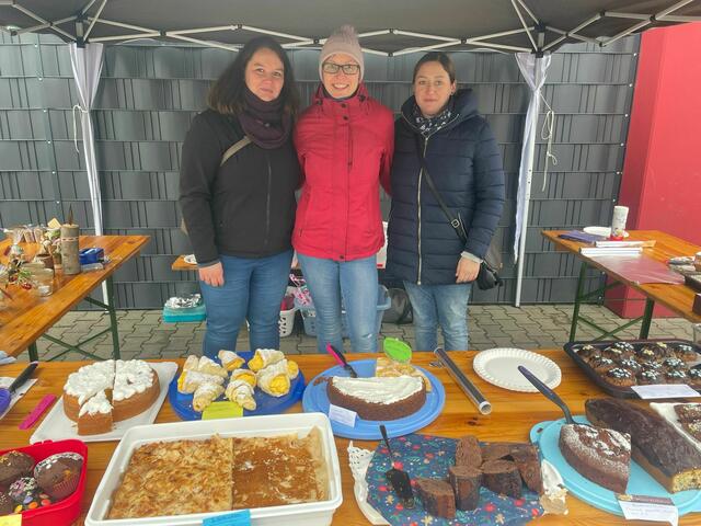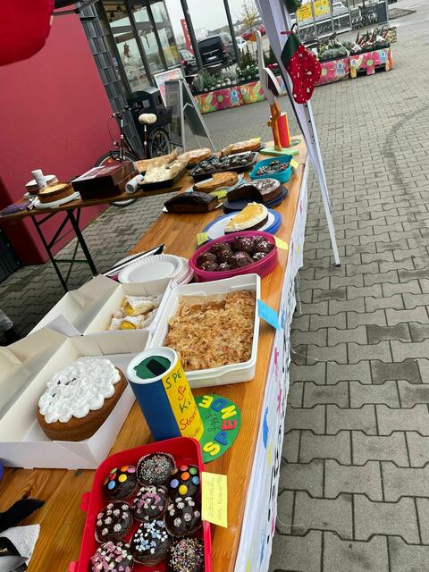Und immer noch nicht müde, traf man die Damen des Elternausschusses am Samstag, den 03. Dezember wieder im Dorf an, dieses Mal vor dem Wasgau-Markt zwischen Böhl und Iggelheim. Im Angebot selbst gebackene Kuchen der Eltern, sowie wieder einmal den tollen Angeboten des Verkaufstisches. Von 9-13 Uhr erfreuten sich die Böhl-Iggelheimer am reichhaltigen Kuchen zum Mitnehmen und kauften noch fleißig kleine Weihnachtsgeschenke.