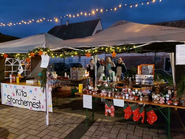 Am Freitag, den 25.11.2022 wurde der Verkaufstisch in der KiTa kurzerhand leer geräumt und zog für drei Tage auf dem Böhler Weihnachtsmarkt ein, denn dort hatte der Elternausschuss seinen Stand mit Spießbraten, Pommes und kleinen Getränken. Hier waren die neun Damen aber zum Glück wieder einmal nicht auf sich alleine gestellt und so bekamen sie Hilfe von vielen Eltern und Freunden. Gerade am Grill war man dankbar über die tatkräftige Unterstützung der Männer und so konnte durch viele Leihgaben wie beispielsweise Kühlwagen und Grill, guten Prozenten beim Einkauf und dem Verkaufstalent aller eine große Einnahme für den Kindergarten erzielt werden. Mit Sicherheit wird man das Storchennest im nächsten Jahr wieder mit seinem leckeren deftigen Spießbraten auf dem Weinachtsmarkt finden können.