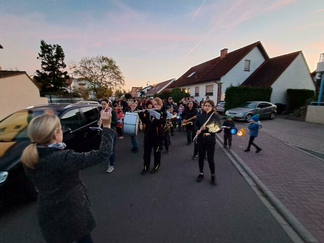Am Donnerstag, den 10.11.2022 hätte der liebe Martin tatsächlich gestaunt, wenn er durch Iggelheim gekommen wäre. Rote, gelbe, grüne und blaue Laternen. Grüffelo, Fisch oder Einhorn. Alle Kinder der kommunalen Kindertagesstätte Storchennest fanden sich am Abend mit Eltern und Großeltern ein, um gemeinsam mit den Erzieher*innen und dem Musikverein Iggelheim das St. Martins Fest zu feiern. Mit Laternen aller Art und der musikalischen Begleitung wurde durch die Kuhstraße, hinweg über die Forststraße, weiter durch die Gartenstraße und zurück über die Lilienstraße in den Garten der Kita marschiert. Alle Leute konnten es sehen, wie die Kinder Laterne gehen und so öffneten getreu dem Lied "Licht in der Laterne" viele Nachbarn freudestrahlend Türen und Fenster und beklatschten den Umzug. Im Garten der Kita wurde noch einmal gemeinsam gesungen, bevor es dann bei einem kleinen Lagerfeuer und vielen Lampions in den Bäumen Glühwein, Würstchen und Martinsbrezeln zur Verköstigung gab. Und hier zeigte sich wieder, dass Zusammenarbeit zwischen Eltern, Elternausschuss und Erzieher*innen hier groß geschrieben wird. Während die einen sich um die Heißgetränke kümmerten, verteilten die anderen Würstchen und Käsewürfel an die hungrigen Kinder und Eltern. Und wieder einmal hatten alle ein Ziel. Glückliche und zufriedene Kinder, die heute an den heiligen Martin erinnert haben.