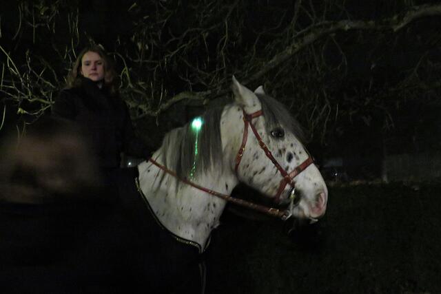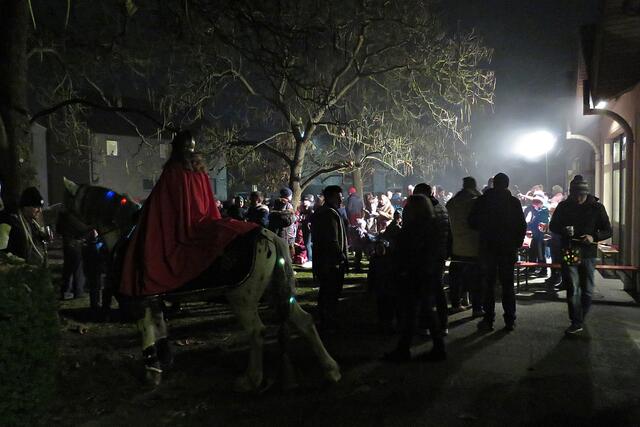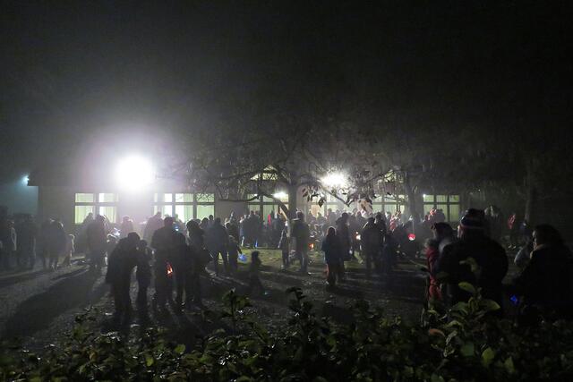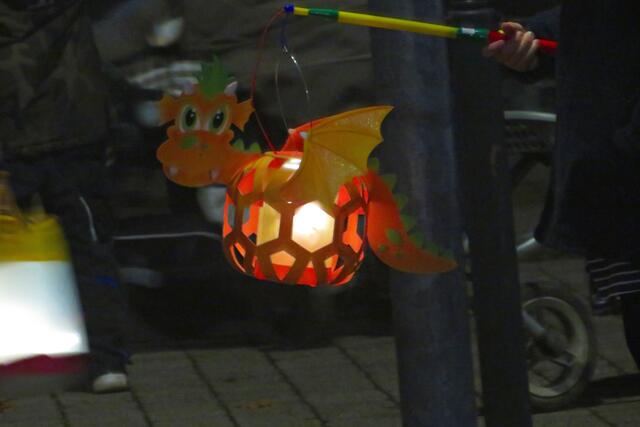Iggelheim: Kinder aus der katholischen Kindertagesstätte gestalteten das Martinsspiel. Der anschließende Martinszug wurde von Sankt Martin – einer jungen Dame - „hoch zu Ross“ angeführt. Das haben die Iggelheimer den Böhlern voraus, denn da musste man ohne Ross und Reiter auskommen. Der Musikverein Iggelheim spielte bekannte Martinslieder und lud zum Mitsingen ein. Fackelträger der Freiwilligen Feuerwehr Böhl-Iggelheim begleiteten den Umzug und entzündeten auf dem Parkplatz des Pfarrzentrums das „Martinsfeuer“. Nach dem Umzug boten Jugendliche aus der Pfarrei Waffeln, Kinderpunsch und Glühwein zum Kauf an, was anhand der langen Warteschlange wohl heiß begehrt war. Unter den Bäumen des Pfarrzentrums tummelten sich auch hier wie in Böhl etliche Familien mit ihren Kindern, die stolz ihre selbst gebastelten Laternen vor sich her trugen.