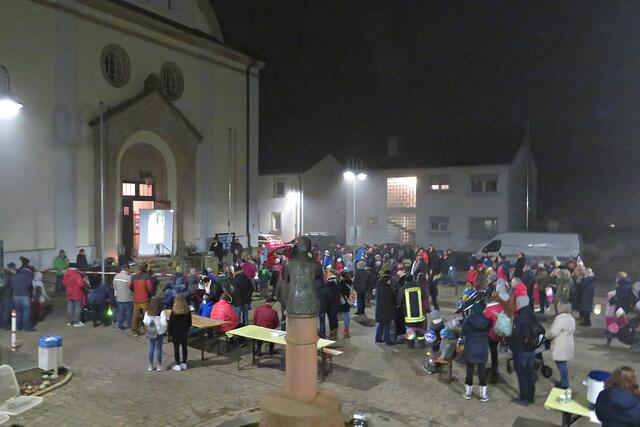 Böhl: Auf einem sehr gut besuchten Dorfplatz rund um den „Hängsching Brunnen“, der heute um 11.11 Uhr bereits stark frequentiert wurde, versammelten sich Eltern mit ihren Laternen haltenden Kindern. Die im Freien stattfindende Feierlichkeit begann mit einem musikalischen Beitrag von Regina Klehr am Piano und Mirco Buhl am Saxofon. Es folgte eine kleine Andacht durch Pfarrer Markus Diringer und Diakon Johannes Müller und das gemeinsam gesungene Lied „Laterne, Laterne“. Pfarrer Diringer erzählte die Geschichte vom Heiligen Martin, der als Junge in Ungarn geboren wurde und Martin hieß. Er sollte Soldat werden und er wurde Soldat in der römischen Armee. Er traf auf einen armen Bettler, der keine vernünftige Kleidung, keine Jacke anhatte und furchtbar fror. Er flehte die Menschen an „Bitte helft mir doch, sonst muss ich hier erfrieren!“ Während Menschen an dem Bettler vorbeiliefen erbarmte sich nur Martin. Und weil er kein Geld hatte, teilte er einfach seinen warmen Mantel und gab dem Bettler die Hälfte. Wieder stimmte der Pfarrer ein Lied an mit Text „Sankt Martin“, das wiederum musikalisch begleitet wurde. Wenn wir mit den Laternen durch die Straßen laufen, wollen wir die Welt hell machen und schon stimmte er das Lied „Tragt in die Welt nun ein Licht“. Mit dem Gebet „Vater unser“ entließ er dann die unruhig werdenden Kinder in die Straßen zum Laternenlauf. Danach erwarteten sie zum Aufwärmen Glühwein und Kinderpunsch. Und ein besonderes Leckerli hatten die beiden Hobbybäckerinnen Ute Tsapandis-Merz und Anja Hermann in Form von etlichen gebackenen knusprigen Gänsen dabei, die später an die Kinder verteilt wurden. Zwei große Körbe voll waren es! Und ich bekam auch eine Gans für den Heimweg geschenkt. Aber zuerst musste ich ja noch schnell nach Iggelheim schauen, was da so los war.