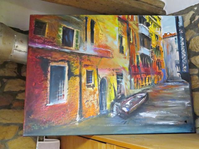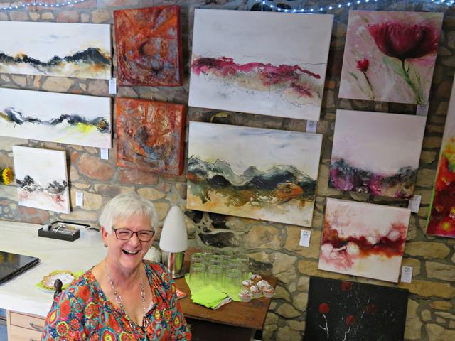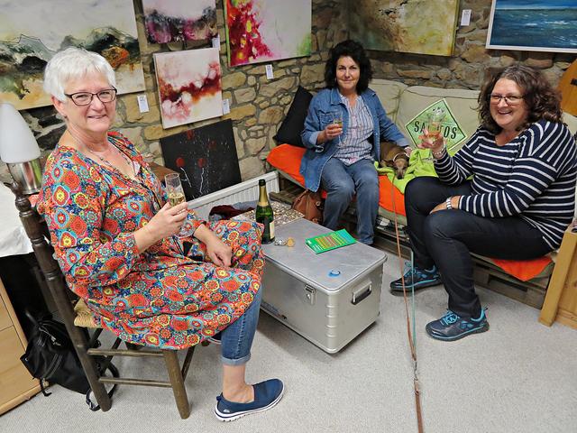 Begleiten Sie mich durch diese Ateliers: Zuerst traf ich auf Anke Oswald, die ihre wundervollen Öl- und Acrylwerke ausgestellt hatte. Und Besuch war auch schon da von Elke Fischer und einer Freundin, die erstmal mit einem Gläschen Sekt auf die Ausstellung anstießen. Anke Oswald geht immer neue Wege und experimentiert gerne mit Öl, Acryl und Aquarellen. In ihren „ARTelier“ kann man gerne eine „Kreativ-.Auszeit“ buchen und unter ihrer Anleitung eigene individuelle Bilder gestalten. Anke Oswald malt seit vielen Jahren und ihre Entwicklung ist sehr vielseitig. Ihre Bilder sind teilweise abstrakt, andere eher gegenständlich und zeigen dem Betrachter ihre umfassende Liebe zur Natur. Der Schwerpunkt ihrer Malerei liegt im Bereich Landschafts- und Blumenmalerei. Ihre nächste Ausstellung wird am 18.10.19 um 19.00 Uhr im Rathaus Mutterstadt sein, zu der sie herzlichst einlädt.