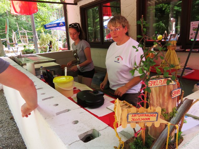 Böhl-Iggelheim: Am 27. Mai standen die Kinder im Mittelpunkt des Kinderfestes am Iggelheimer Haisl. 15 Mitglieder des Naturfreundevereins Böhl-Iggelheim kümmerten sich an diversen Mitmachstationen um die fünf Sinne des Nachwuchses. Bereitwillig gab Christian Ledule Auskunft über dieses Fest, das nach der Einweihung des Spielplatzes im Jahre 2013 ins Leben gerufen wurde. Im Schnitt finden sich jedes Jahr zwischen 100 und 150 Kinder hier mit ihren Eltern oder Großeltern ein, um mit einer „Laufkarte“ (kostet 1 Euro) die 9 unterschiedlichen Stationen zu erleben. Hat man sieben von neun Stationen erfolgreich absolviert, bekommt man zur Belohnung eine hausgemachte „Naturfreunde-Waffel“. Nachdem immer mehr Kinder nur noch von elektronischen Geräten berieselt würden, wollte man die Kids auch einmal dazu bringen, sich in der Natur zu bewegen, die Koordination und das Gedächtnis zu trainieren. Im Einzelnen gab es also folgende Stationen: