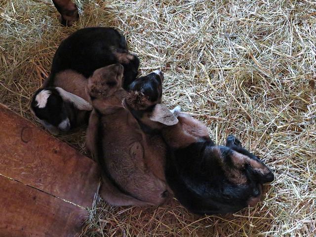 Böhl-Iggelheim. Mich erreichte die erfreuliche Nachricht, dass es in einem Stall in Böhl-Iggelheim Nachwuchs bei den Anglo Nubier gibt, das ist eine Ziegenrasse. Wie es bei „Babys“ öfter am Tag noch üblich ist, schliefen die fünf knuddeligen Zicklein als ich eintraf. Die Drillinge kamen von 6. auf 7. Februar gesund zur Welt, dabei handelt es sich um zwei Mädels und einen Bub; die Zwillinge sind männlich und weiblich und kamen am 7. Februar zur Welt. Die beiden Ziegenmütter haben nun alle Zitzen voll zu tun, ihre Zicklein gut mit der „Brust“ zu nähren bis sie so nach und nach zur normalen Kost übergehen.