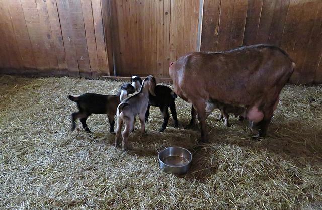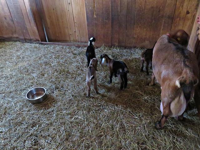 Während meines Besuches wurden sie auch munter und zickten herum. Nun weiß ich auch, wo das Wort Zickenalarm herkommt. Die kleinen Böcklein machten freudige Bocksprünge und ärgerten ihre Geschwister. Die Mamas waren darauf bedacht, dass nur ihre eigenen Kinder bei ihnen saugten, die anderen stupsten sie weg.