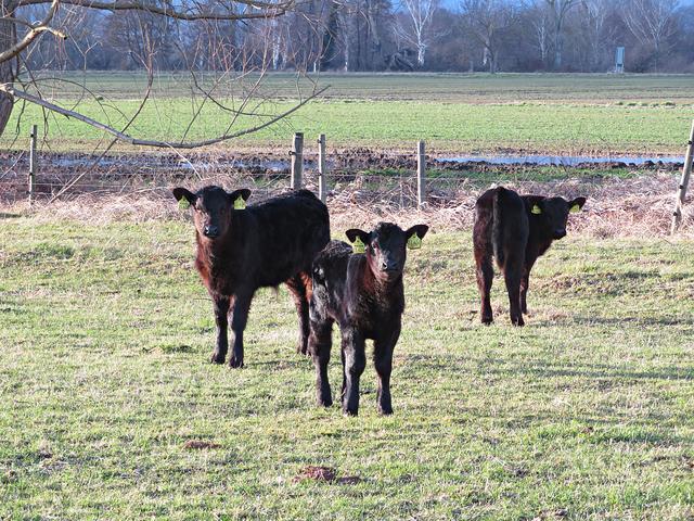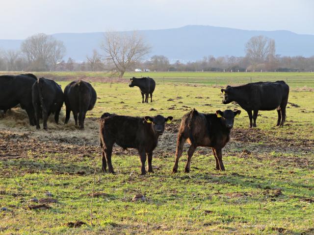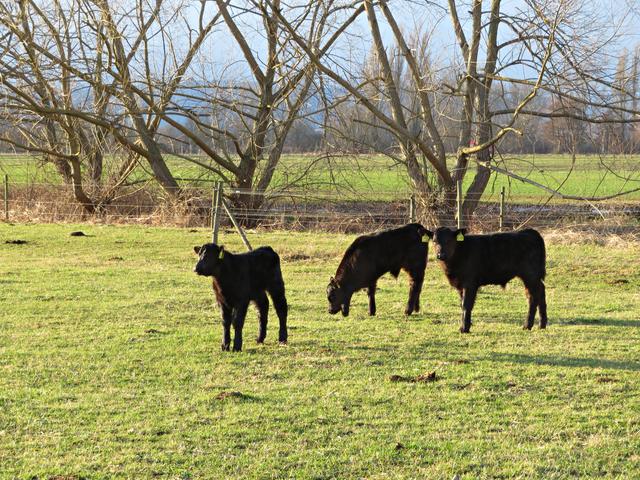 Wie alt die Kälbchen auf der Weide sind, die ich außerdem erblickte, konnte ich nicht in Erfahrung bringen. Sie waren ebenfalls noch jung und schauten mich wachsam an, da sie mich noch nie gesehen hatten, fühlten sich aber inmitten der Herde sicher. (mel)