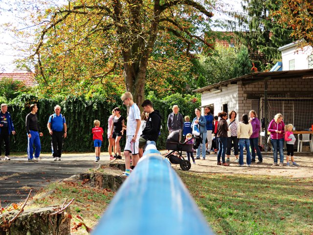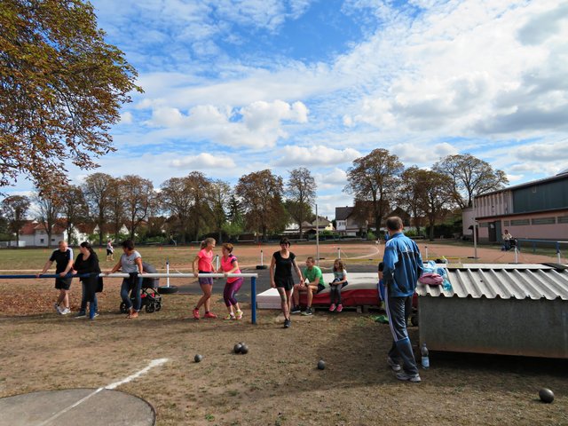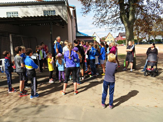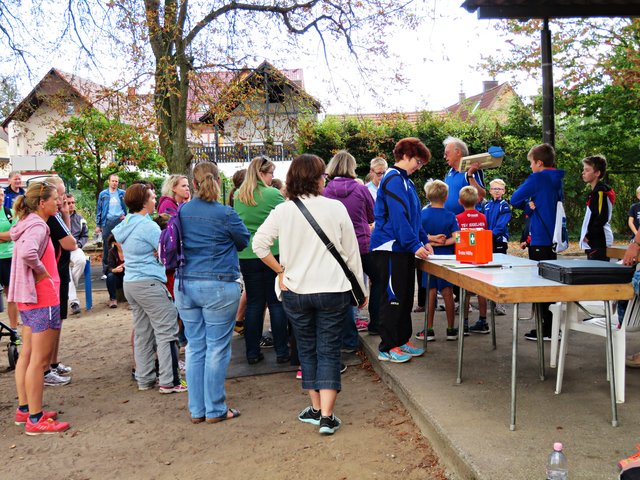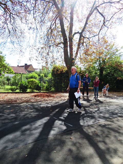 Worte des Dankes an ein paar wenige Helfer, die am Tag zuvor geholfen hatten, die Anlage wettkampftauglich zu machen. Wären es mehr gewesen, würden nun keine Kastanienhügel mehr an den Seiten zu sehen sein. Dank an Kuchenspender/innen und Frau Imo, die sich um das leibliche Wohl der Besucher kümmerte.