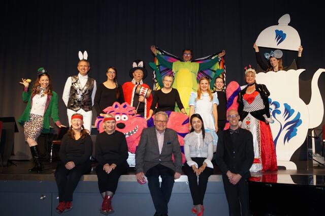 "Ein Wunderland so herrlich fein, voll seltsamer Gestalten", das brachte das Opernstudio der Musik- und Kunstschule Bruchsal am 24. Oktober auf die Bühne des Alex-Huber-Forums in Forst. Doch bei der Dernière des diesjährigen Opernstücks "Alice im Wunderland" durften sich nicht nur die Zuschauer über die ideenreichen Ereignisse und phantasievollen Figuren auf der Bühne wundern. Auch das Ensemble selbst erlebte zauberhafte Überraschungen: So war der Saal mit knapp 200 Zuschauern vollständig ausverkauft! Über einen Gast freuten sich die Darsteller dabei ganz besonders: Der Komponist höchstpersönlich hatte sich zur Vorstellung angekündigt und wohnte dem Schauspiel zum ersten Mal nach seiner Uraufführung bei.