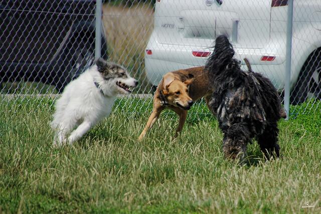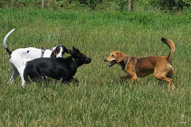 - Für die, die schon auf der Wiese sind, empfiehlt es sich, dafür zu sorgen, dass nicht alle Hunde gleich an die Schleuse rennen, um die Neuankömmlinge zu bedrängen… äh… begrüßen. Dass kann bei einigen Hunden zu Angstreaktionen beim Betreten der Wiese führen.