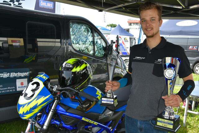 Foto 2 : Suzuki-Pilot Nicolai Kraft (Hockenheim) liegt im Twin-Cup auf dem zweiten Gesamtrang (Foto Hermann Rüger)