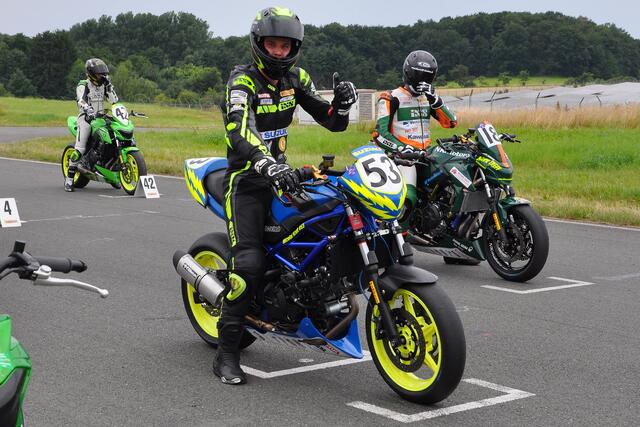 Beim ersten Lauf am Samstag lieferten sich die drei Piloten erneut ein spannendes Rennen, am Ende nach 12 Runden siegte Johann Flammann mit 0,520 Sekunden vor Nikolai Kraft und 0,624 Sekunden vor Felix Klinck. Auch beim zweiten Rennen am Sonntagmorgen duellierte sich das Trio das ganze Rennen um den Sieg. Da wegen einem Sturz in der vorletzten Runde ein Motorrad auf der Strecke lag, wurde nach Rennen abgebrochen und nach 10 Runden gewertet. Zu diesem Zeitpunkt führte Flammann mit nur 0,130 Sekunden vor Klinck und 0,806 Sekunden vor Kraft.