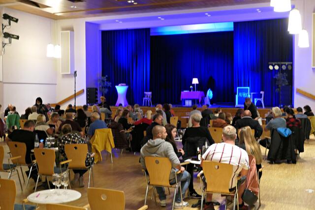 Das große Theater war ziemlich voll und auffallend war die Mehrzahl an Frauen. Aber auch ein paar Männer sichtete ich, entweder wurden sie „verpflichtet“ oder waren freiwillig da. Ich hatte meinen Platz am Tisch von drei Schifferstadter Damen, die zum ersten Mal das Boulevardtheater besuchten. Auf meine Frage, wie sie darauf aufmerksam geworden seien, antworteten sie, dass sie auf Facebooks Veranstaltungsseite darauf gestoßen wären. Es sollte ein vergnüglicher Abend mit meinen Tischgenossinnen werden. Aber auf die halbnackten Bauarbeiter warteten wir vergeblich ;-)