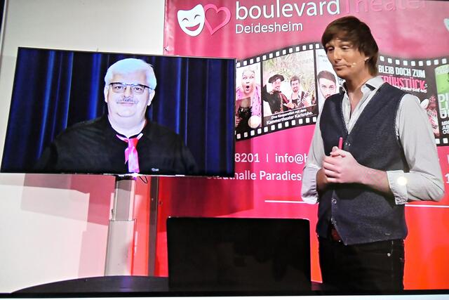 Böhl-Iggelheim/Deidesheim: Am 7. Februar lud das Boulevardtheater Deidesheim zu einem besonderen Event ein, einem Stream zur „Lachtherapie“. Nachdem das Theater so lange geschlossen bleiben muss, haben sie sich zu anderen Wegen entschlossen. Man konnte sich käuflich mit einem zugesandten Code ganz gemütlich vor die Glotze setzen und einmal wieder von Herzen lachen, denn Lachen ist die beste Medizin. Mit von der Partie sein sollten unter anderem Boris, Tim (der Winzer Bu), Toby, Dieter und Amanda, Fräulein Baumann und Daniel Helfrich und Auszüge ihrer Programme spielen.