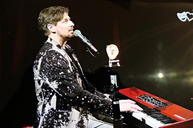 Es folgten Ausschnitte aus dem Stück mit Dieter und Amanda. Die beiden Comedians saßen im Studio B und tüftelten an einem Rätsel herum. Er fragte sie nach einem weiblichen Geschlechtsorgan. Sie fragte ihn: „Waagrecht oder Senkrecht?“ Er „Waagrecht“. Sie antwortete „Dann muss es die Gosch soi“. Sie plauderten aus dem Nähkästchen, wie zum Beispiel Gewohnheiten von Boris und Tim. So wissen wir nun: Boris schläft auf dem Rücken, die Hände gefaltet mit offenem Mund, wie ein Toter.