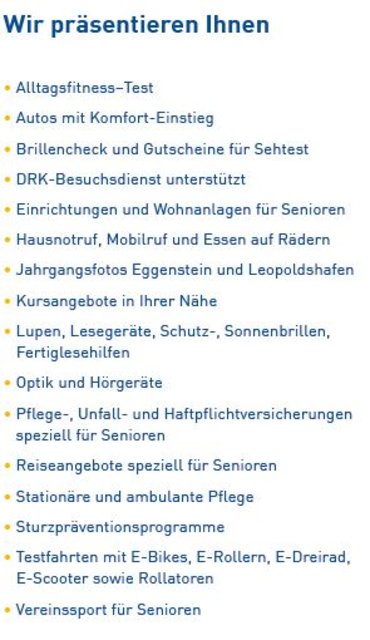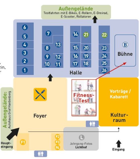 Am Sonntag, 22.9.2019, findet von 11 bis 17 Uhr in der Rheinhalle in Eggenstein-Leopoldshafen, Leopoldstraße 2, eine Messe speziell für die Generation 60+ statt. 32 Aussteller präsentieren ein breites Angebot an Beratung und Aktionen mit Prüfen, Messen, Testen. Der Besuch der fünf hochinformativen Vorträge zur Vorsorgevollmacht, Hörgeräte-Versorgung, Faszienbehandlung, Sturzprävention und Hausnotruf ist ebenso kostenfrei wie die Messe. Das kulinarische Angebot mit Schweinebraten, Putengeschnetzeltem und Wurstsalat wird um leckeren selbstgebackenen Kuchen zu günstigen Preisen ergänzt.