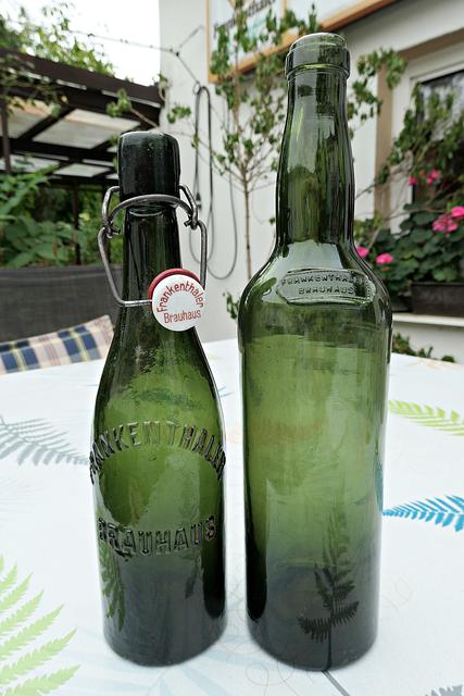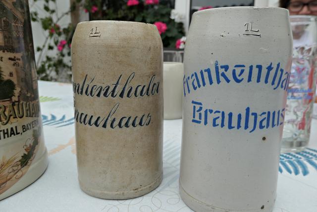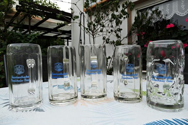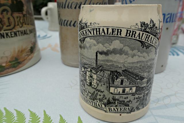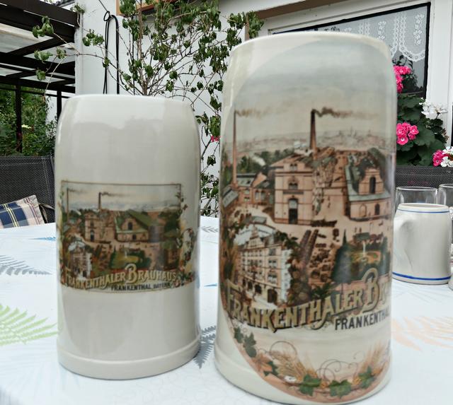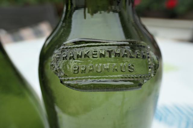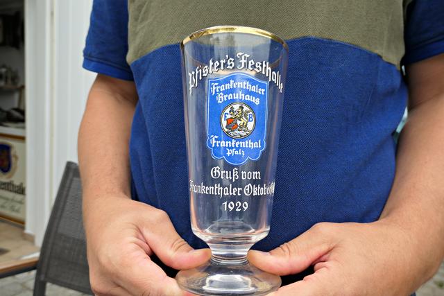 Als ich ihn frage, ob er überhaupt noch Flaschen- oder Glaswünsche habe, meinte er, ein 1-Liter-Glas mit 4 seitlichen Stegen, Aufdruck Frankenthaler Brauhaus, Schutzmarke F B, Frankenthal Pfalz würde er noch gerne haben (siehe letztes Foto). Falls sich also irgendwo noch so ein Glas versteckt hält, wissen Sie, wo Bedarf herrscht. (mel)