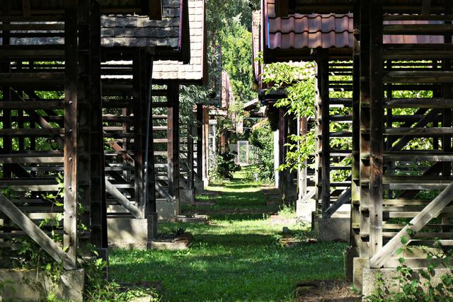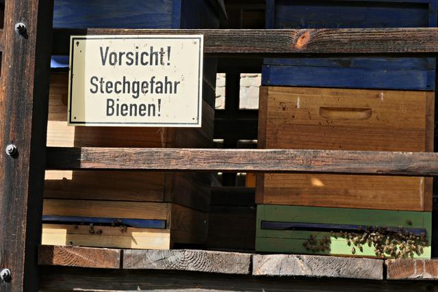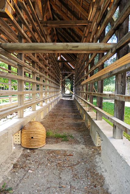 Jedes Jahr im Frühling kommen hier auch Störche zum Brüten in die Kaminnester. Leider starben die Jungen dieses Jahr wegen der plötzlich einsetzenden Kälte. Außerdem findet man auf dem Areal etliche Pfaue und Hühner, deren Eier man in Schaukästen von außen sehen kann. Und an einer Stelle ist Vorsicht geboten, denn hier schwirren etliche Bienen herum.