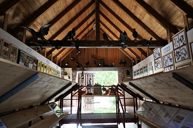 Hier gibt es eine ganz besondere Art von Fledermäusen, nämlich Mückenfledermäuse, die kleinste Art. So kommen jedes Jahr 1200 Mückenfledermäuse aus ihrem Winterquartier hier her, um sich fortzupflanzen. Das Dach wurde im historischen Stil wieder aufgebaut. So gibt es keine übliche Dachrinne, sondern sie haben Platz zwischen Ziegel und Sparren, um hineinzufliegen. Das wird über den Sommer zu einer Kinderstube und sie kommen jedes Jahr wieder nachdem sie das Quartier im Spätjahr verlassen haben. Sie scheinen sich hier in diesem Naturschutzgebiet halt sehr wohl zu fühlen.