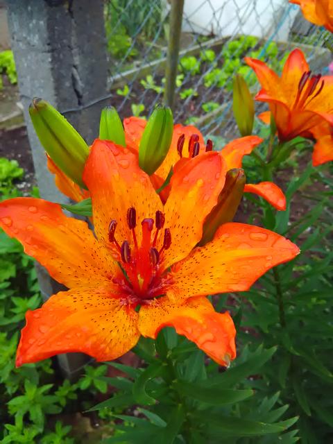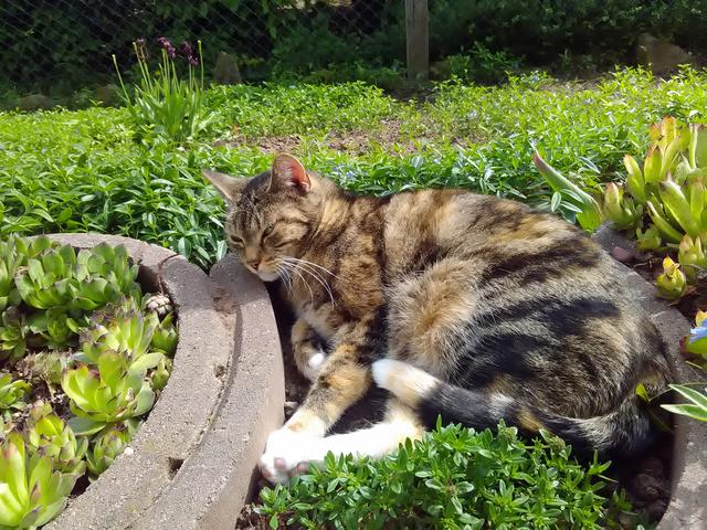 Katze macht Siesta, Lilie in Tantes Garten.