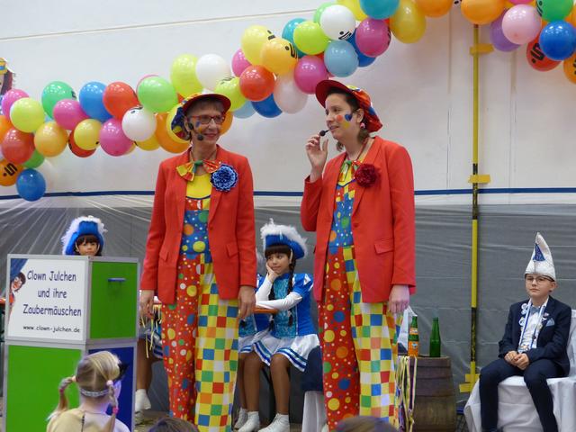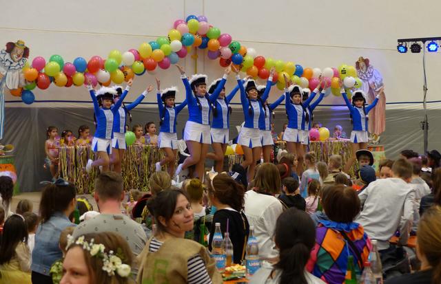 Die Wikinger vom TSV Neudorf eroberten tänzerisch mit akrobatischen Einlagen die Bühne und als Clown Julchen mit ihren Zaubermäuschen erschien, war kein Kind mehr zu halten. Dicht an dicht war die Bühne belagert und es gab viel zu lachen.