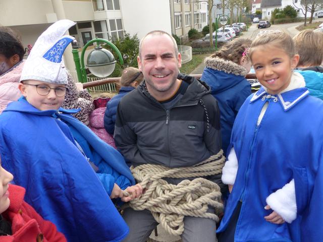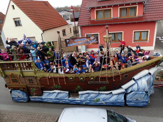 Die Freude war den Kindern ins Gesicht geschrieben, als sie auf dem Narrenschiff durch Neudorfs Straßen zur Erich-Kästner-Halle zogen.