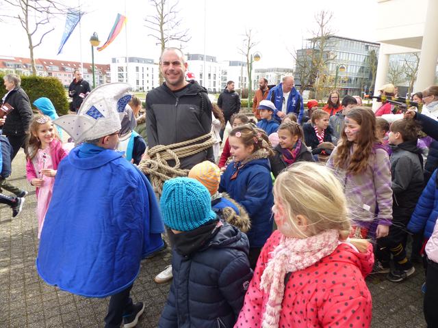 Was für eine Vorfreude. Bereits vor 13 Uhr füllte sich am Faschingssamstag der Rathausplatz mit Spiderman, Piraten, Cowboys, Elfen, Prinzessinnen und mehr. Pünktlich um 13.11 Uhr gab das Kinderprinzenpaar Marlene I (Heilig) und Lenny I (Melder) das Kommando zum Rathaussturm. Im Nu hatte sich die Meute im Rathaus verteilt um den Bürgermeister, Herrn Christian Eheim zu suchen mit dem Ziel diesen auf das Piratenschiff der NeuKaGe, der Santa Narria zu entführen und als Beute beim Kinderfasching zu präsentieren.