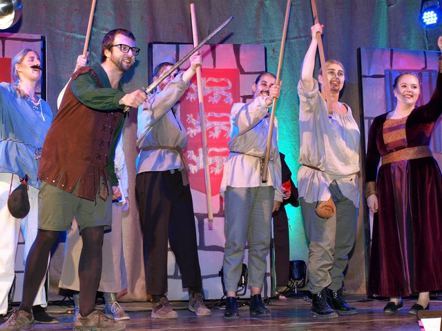Ja, wo hat es das schon in der Region gegeben? Dass eine kleine Gemeinde mit einer großen Musicalstadt gleichzieht? Wohl nur wenige Laienchöre dürften in dieser Dimension, mit diesem Aufwand und auch mit dieser Klasse ein gar dreistündiges Musical zelebriert haben. Die Legende von Robin Hood holte sich die „Eintracht“ Hambrücken in die Gegenwart – und das gleich zweimal hintereinander in der Kulturscheune des Spargelhofs Simianer, die Platz für rund 400 Besucher bietet.