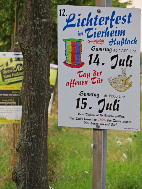 Haßloch: Der Tierschutzverein feierte am 14.07. sein diesjähriges Lichterfest und alle kamen. Jedenfalls kam es einem so vor, als wenn ein Großteil der Haßlocher, viele mit dem Fahrrad kommend, den Weg zum ziemlich außerhalb gelegenen Tierheim fand. Jedes Jahr wurden es mehr Besucher und man hat beschlossen, diese Veranstaltung auf 2 Tage zu erweitern. Am ersten Tag findet das Lichterfest und am zweiten Tag der „Tag der offenen Tür“ statt, also Morgen am 15.07, Füllerweg 157.