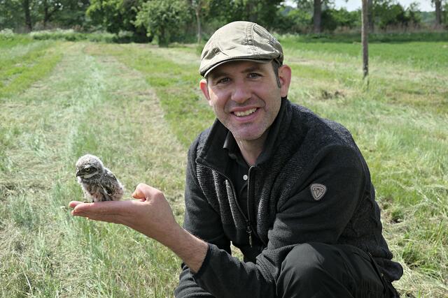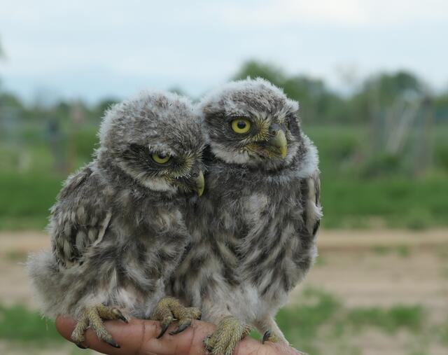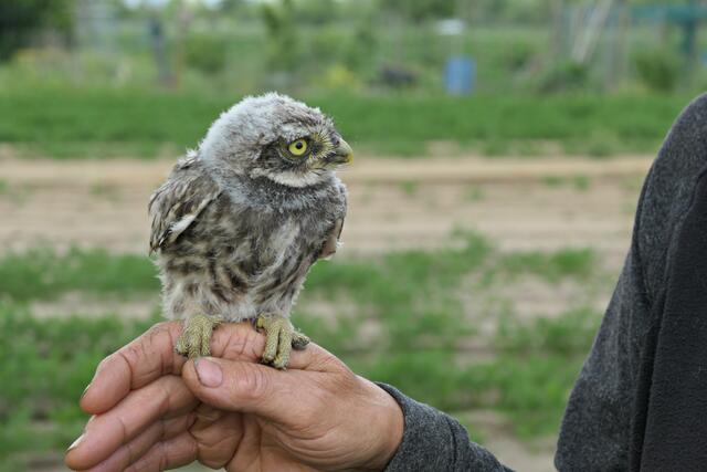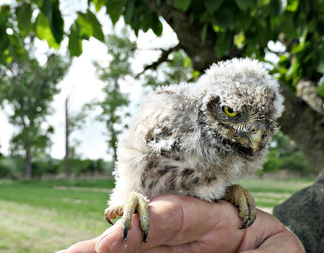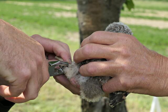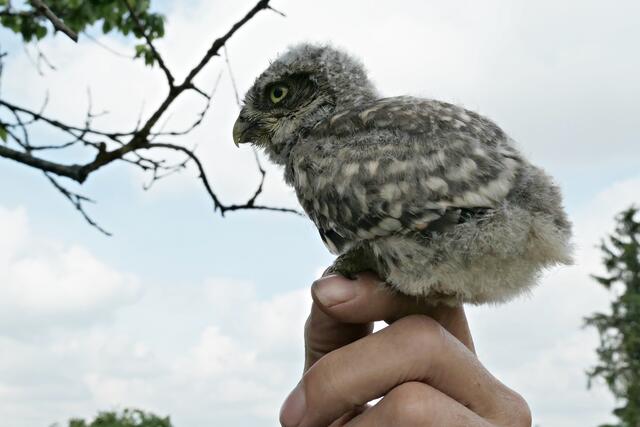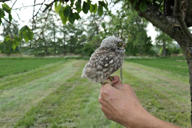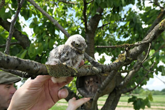 Beringung von jungen Steinkäuzen
