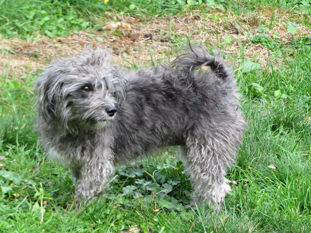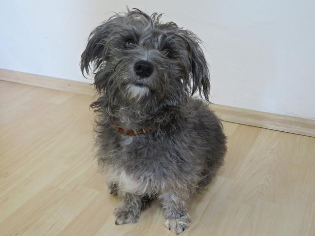 Die Rasse ist unbekannt, spielt auch keine Rolle, denn die kleine spanische Estrella, hier in der Pfalz heißt sie einfach Stella und bedeutet „Stern“, sieht allerliebst aus. Ich durfte sie heute besuchen und ein Fotoshooting machen. Frauchen ließ Stella dafür in die Rolle von Salvatore Dali schlüpfen mit typisch gedrehtem Schnurrbart oder als Wuschel mit wilder Mähne. Aber nach einmal Schütteln war die ganze Pracht wieder zunichte gemacht.