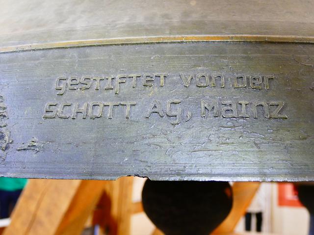 Es schloß sich eine kurze Besichtigung der kleinen Dokumentation anläßlich des 10jährigen Jubiläums der Glockenweihe durch Bischof Lehmann der von der Mainzer SCHOTT AG gestifteten drei Glocken sowie die damit verbundenen Arbeiten im Glockenturm in Höhe von € 230.000,- an.