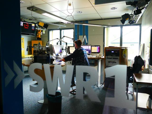 Kurz danach ging es beim Hörfunk in der ersten Etage weiter. Durch mehrere Glasscheiben oder -türen konnte man gut erkennen, wo gerade live eine Sendung bei SWR1 oder 4 lief. In einem der Senderäume bei SWR1 konnten wir sehr viel der Technik inform von Mikrofonen, Reglerpulten, Kopfhörern, mehreren nebeneinander platzierten Monitoren usw. sehen. Wie im Flug waren 2 1/2 interessante und informative Stunden beim Südwestrundfunk in Mainz vergangen.